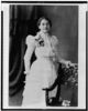 Young African American woman, three-quarter length portrait, standing, facing slightly right, with left hand on back of chair