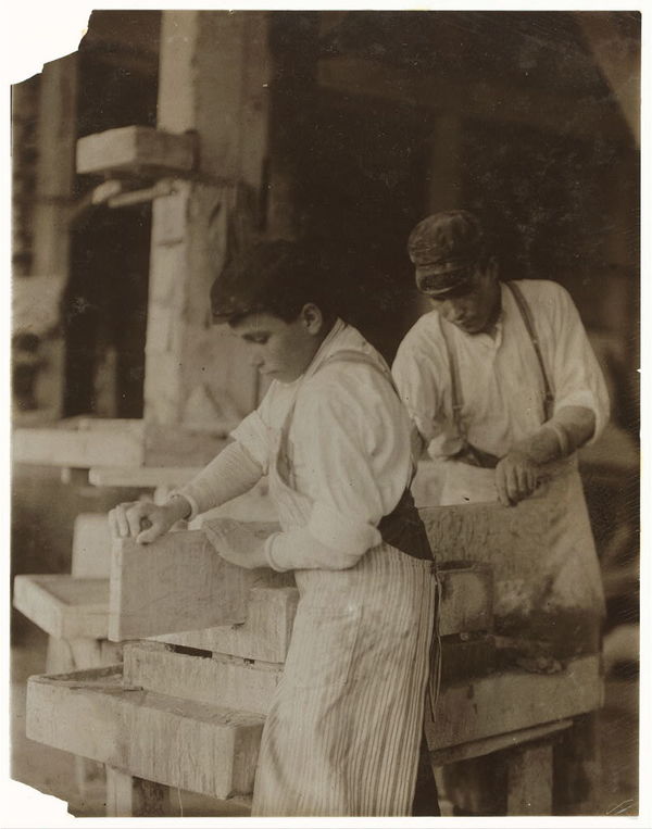 Young boy polishing marble in Vermont Marble Co., Centre Rutland, Vt. Most of these are illiterates. Location: Centre Rutland, Vermont.