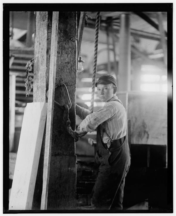 Young boy running machine in Vermont Marble Co., Centre Rutland, Vt. Location: Centre Rutland, Vermont.