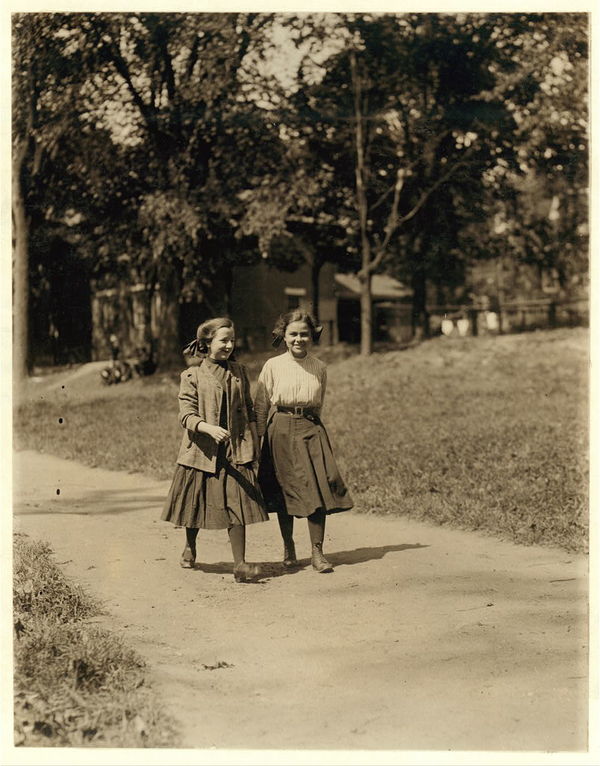 Young girls working in American Woolen Mills, Winooski, Vt. Most are illiterate. Work slack and force small. (See also N.C.L.C. Photos #720-745 May 1909.) Location: Winooski, Vermont.