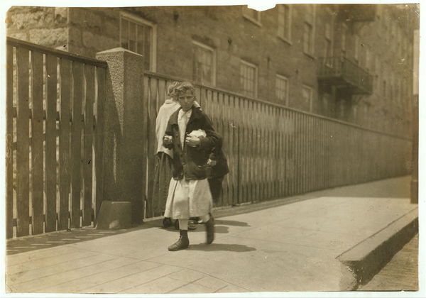 Young Worker in the Union Mill going home 11 A.M. Location: Fall River, Massachusetts / Lewis W. Hine.