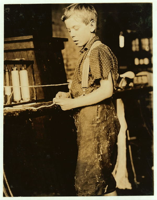 Youngsters making bands, cotton mill, North Pownal, Vt. Clarence Noel, 11 years old. Location: North Pownal, Vermont.