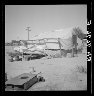 Drought refugees from Oklahoma camping by the roadside. They hope to work in the cotton fields. There are seven in family. Blythe, California