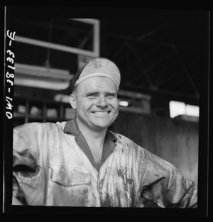 Women welders on the way to their job at the Todd Erie Basin dry dock
