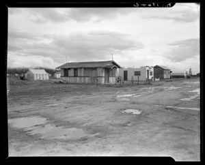Shack in "Little Oklahoma." Lots 50 x 150, cost one hundred and twenty to two hundred dollars. Bought on hope and sold on promises. No work since last fall. A few get relief and "welfare," but they say they are not eligible in California