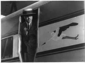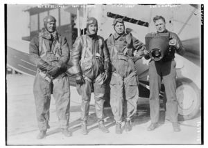Orville Wright, Major John F. Curry, and Colonel Charles Lindbergh, who came to pay Orville a personal call at Wright Field, Dayton, Ohio, June 22, 1927