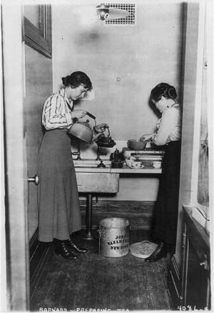Helen Campbell, first wireless operator of Natl. League for Women's Service, half length portrait, seated at wireless telegraph, facing left