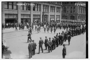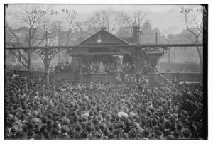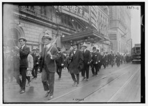 Striking of cloak makers, N.Y., 5/1/16, pickets grouped on steps
