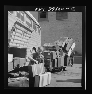 Cincinnati, Ohio. A baggage clerk in the Greyhound bus terminal