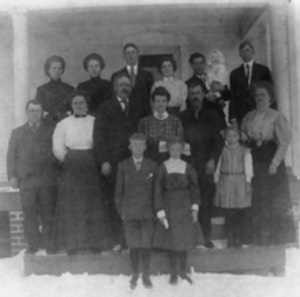 The Charles and Lucinda Bacon family. Back row second from right my Grandfather Cecil Parker holding Alice Neola and 3rd from right is my Grandmother Maude. 1909