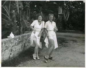 My Grandmother Maude Abigail Bacon, seated, in photo taken by her father Charles Smith Bacon. Notice the flowers painted onto the photo. Probably taken between 1900 and 1905