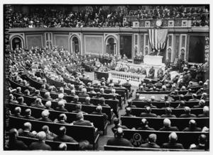 Pres. Wilson reading message on tariff to Congress, 4/9/13