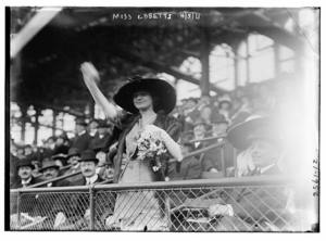 Miss Genevieve Ebbets, youngest daughter of Charley Ebbets, throws first ball at opening of Ebbets Field (baseball)