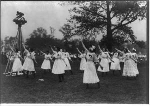 New York City school children. Teen-aged girls dancing at May Pole, May 1913
