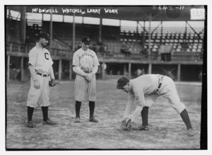 Ward McDowell, outfield prospect, watches Nap Lajoie, Cleveland AL (baseball)