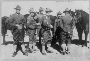 U.S. Army cavalrymen standing with their mounts. El Paso, Tex., Feb. 1912