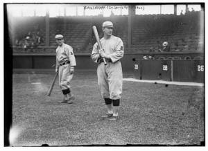 Roger Bresnahan, St. Louis, NL, Miller Huggins in background (baseball)