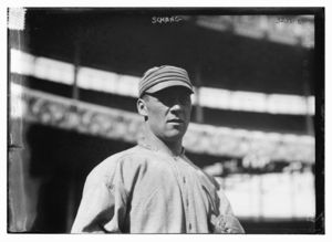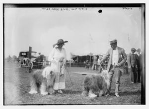Mrs. W.G. Harding with dog "Hub" who is sitting on table