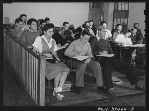 Washington, D.C. Mrs. Mary Spangler, Woodrow Wilson High School teacher, attending a meeting with teachers from other city schools