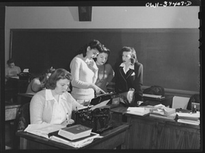 Washington, D.C. A class in the use of business machines at the Woodrow Wilson High School