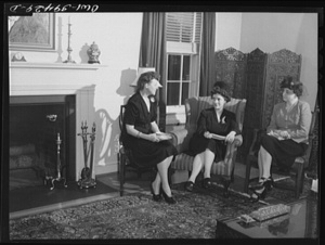 Washington, D.C. Members of a Woodrow Wilson High School sorority serving tea for their mothers at the home of their advisor, Mrs. Mary Spangler (center)