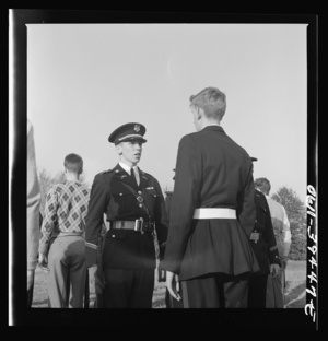 Washington, D.C. Walter Spangenberg, a captain in the cadet corps at Woodrow Wilson High School, giving instructions to a member of his company