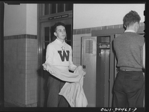 Washington, D.C. Walter Spangenberg at his locker at Woodrow Wilson High School