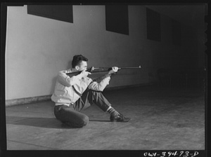 Washington, D.C. Walter Spangenberg practicing with a rifle at Woodrow Wilson High School