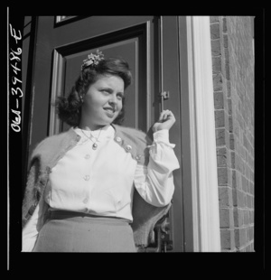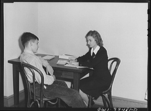 Washington, D.C. Walter Spangenberg, a student at Woodrow Wilson High School, who has an appointment to Annapolis, talking with a Wilson graduate who is now in the Navy
