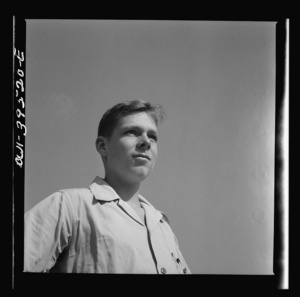 Frederick, Maryland. Walter Spangenberg, a student at Woodrow Wilson High School, in his Civil Air Patrol uniform at the Stevens Airport where he takes flying lessons