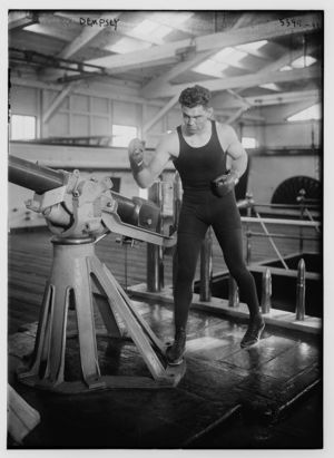 Unidentified African American soldier in Union uniform with a rifle and revolver in front of painted backdrop showing weapons and American flag at Benton Barracks, Saint Louis, Missouri