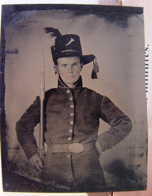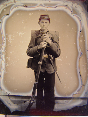 Unidentified young soldier in Union uniform and Hardee hat with bayoneted musket