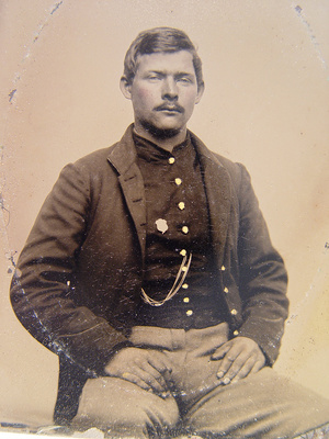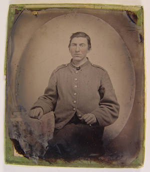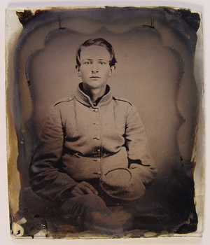 Unidentified soldier in Confederate shell jacket