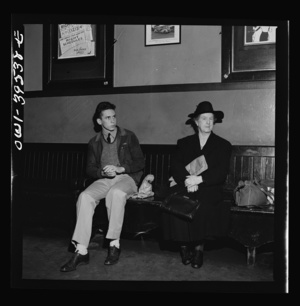 Washington, D.C. Walter Spangenberg, a student at Woodrow Wilson High School, waiting at the bus station for transportation to the Stevens Airport, Frederick, Maryland