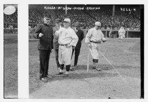 Umpire Charles "Cy" Rigler, manager John McGraw, New York NL, Umpire Augie or Charlie Moran, manager Wilbert Robinson, Brooklyn NL (baseball)