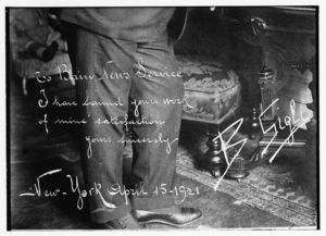 To Bain News Service for your good work, Sincerely, B. Gigli --- N.Y., 4/15/21