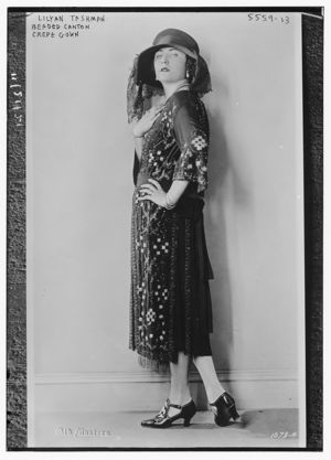Lilyan Tashman (wearing beaded Canton crepe gown)