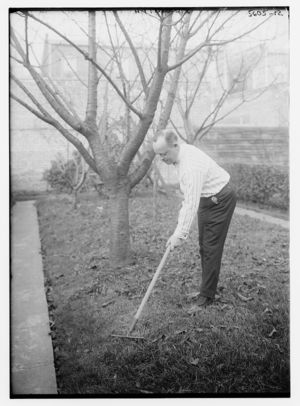 J.C. Smith raking lawn