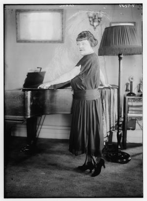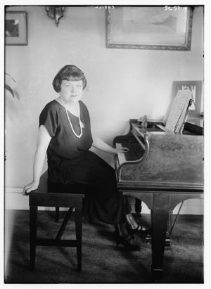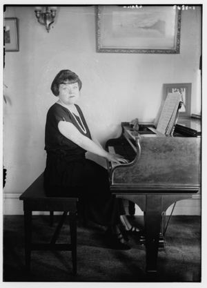 Cahill seated at a piano
