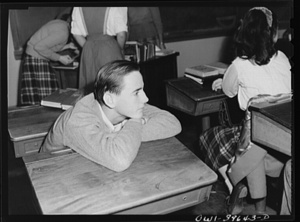 Washington, D.C. Walter Spangenberg (at far right) in his geometry class at Woodrow Wilson High School