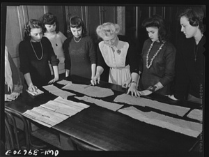 Washington, D.C. Sally Dessez, a member of the Woodrow Wilson High School newspaper staff helping fold papers for distribution