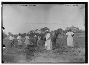 Mrs. T.B. Wells, Mrs. D.A. Palmer & Mary G. Hay -- suffrage farm