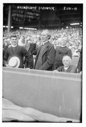 Australian Archbishop Daniel Mannix of Melbourne, throwing baseball at Polo Grounds, New York (baseball)