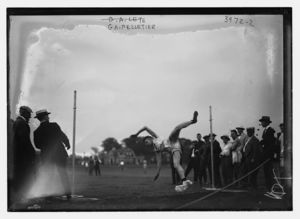 Newark, Earl W. Thompson wins 120 yds. hurdles