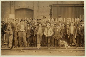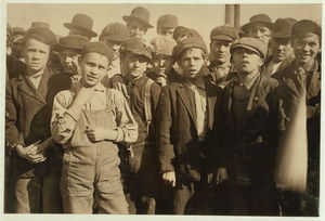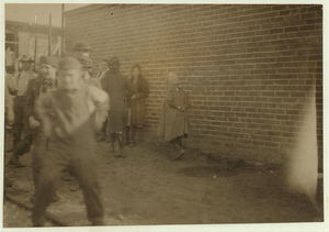 Doffer boys in Knoxville Cotton Mill. Smallest boy said he had been working there one year. Location: Knoxville, Tennessee.