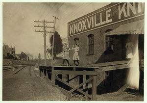 Doffers in Knoxville Cotton Mill. Location: Knoxville, Tennessee.