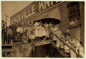 All are workers in Knoxville Knitting Mills. Smallest boy "Ravels." Smallest girl is a steady worker. Location: Knoxville, Tennessee.