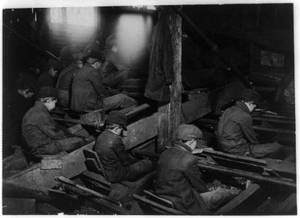 Breaker boys working in Ewen Breaker of Pennsylvania Coal Co. For some of their names see labels 1927 to 1930. Location: South Pittston, Pennsylvania.