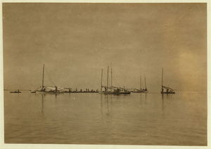 Oyster fleet fishing on the reefs,. Location: Mobile Bay, Alabama.