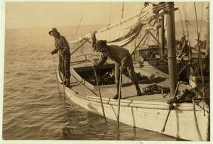 Oyster fleet fishing on the reefs. Location: Mobile Bay, Alabama.